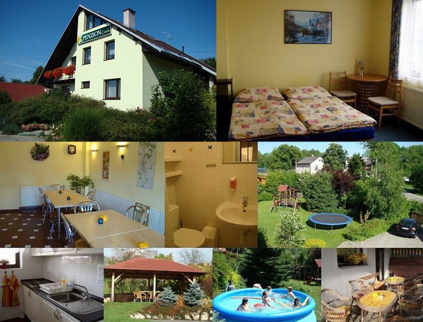 Размещение: Penzion s rodinnou atmosférou a celoročním provozem, s kapacitou 13 lůžek ve 4 pokojích (každý s vlastním soc. zařízením a WiFi). Nekuřácké prostředí, moderní vybavení, pěkná zahrada, stolní tenis, dětské hřiště, letní bazén. Vybavená kuchyň (2 ledničky, čtyřplotýnkový vařič, mikrovlnka, rychlovarná konvice, kávovar, toustovač, nádobí, dětská židlička) s prostornou jídelnou. Uzamykatelná lyžárna - vhodná také pro kola a kočárky. Parkování na oploceném parkovišti u penzionu zdarma. Pro motorkáře uzamykatelná garáž.
