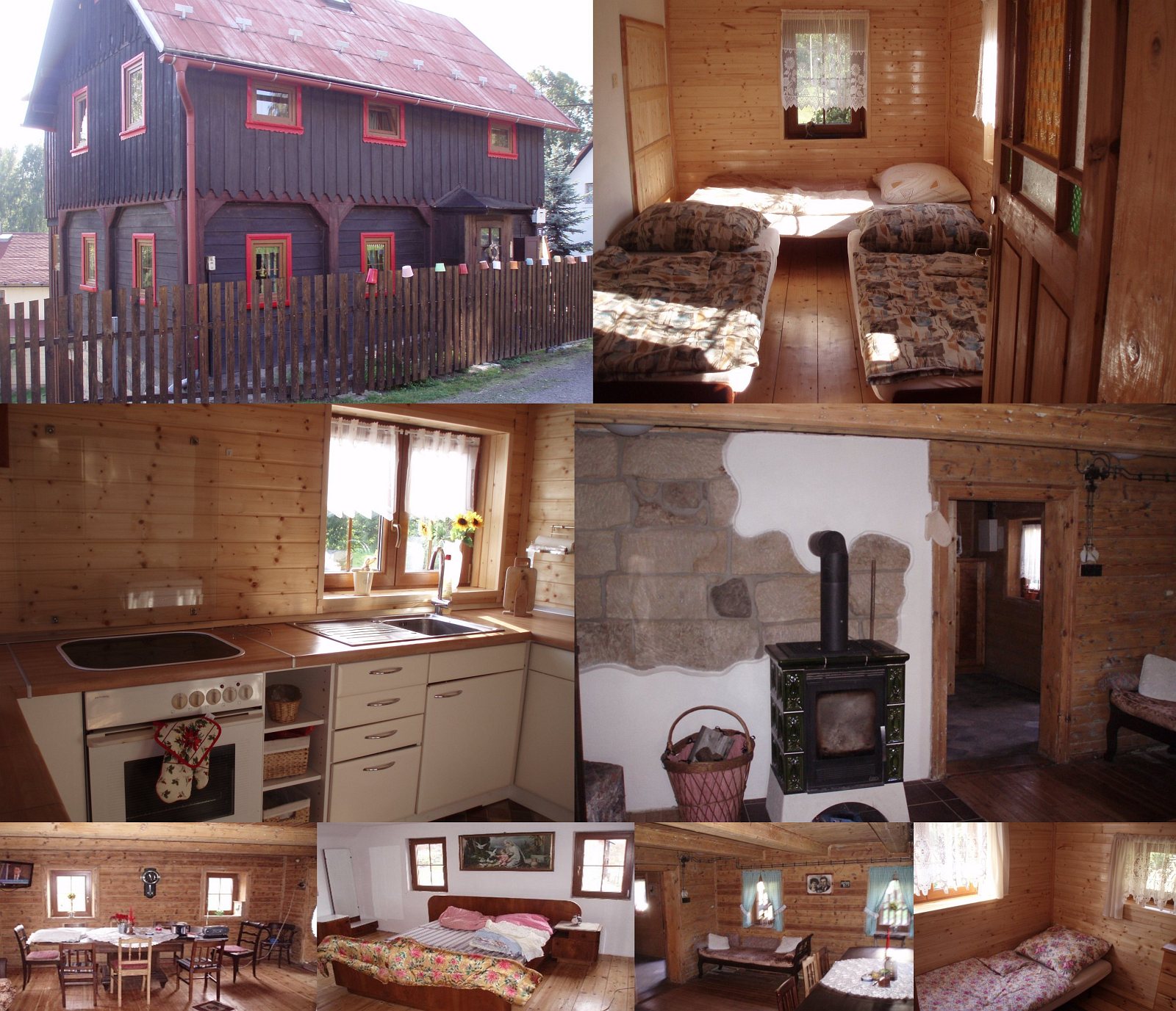 Размещение: Chalupa pro 9 osob ve 3 ložnicích, s celoročním provozem. V přízemí je obývací pokoj s televizí, vybavená kuchyně (s ledničkou, mikrovlnkou, varnou konvicí, myčkou nádobí a sklokeramickou deskou), koupelna s WC a sprchovým koutem. V patře jsou tři ložnice (1x2, 1x3 a 1x4 lůžka) a další WC. Na zahradě před chalupou je možnost posezení (zahradní nábytek, slunečník) i parkování pro 3 auta. Vytápění krbovými kamny v obývacím pokoji, ohřev teplé vody elektrickým bojlerem.
