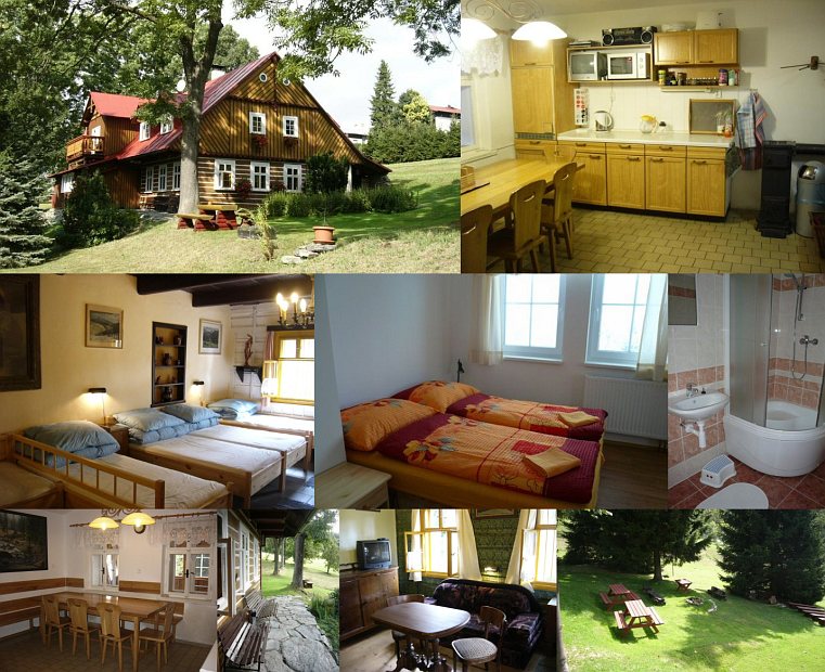 Размещение: Chalupa + apartmány a pokoj ve vedlejší budově. Chalupa (13 osob): Vybavená kuchyň s jídelnou (2 lednice, mrazák, mikrovlnka, elektrická trouba, elektrický sporák, varná konvice). 2-, 4- a 7-lůžkový pokoj, v každém pokoji TV a akumulační kamna. Zádveří se v zimě používá jako lyžárna. Stolní tenis, šipky. Venku menší hřiště (volejbal, nohejbal, ringo, petanque), posezení (ohniště, gril). Apartmány a pokoj: dva 4-lůžkové apartmány (vybavená kuchyňka, soc. zařízení), 2-lůžkový pokoj (soc. zařízení), možnost přistýlky. Možnost ubytování se psem.