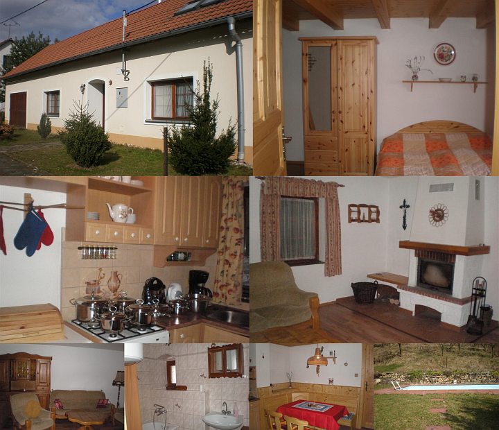 Размещение: Chalupa pro max. 6 osob. Obývací pokoj (krb, rozkládací pohovka pro 1 osobu, gauč, dvoukřeslo, křeslo, skříně, TV, konferenční stolek). Ložnice (skříň, manželská postel, komoda). Podkrovní pokoj (3 lůžka + přistýlka). Kuchyně (linka, ohřívač na teplou vodu, rychlovarná konvice, kamna, lednička, kávovar, nádobí). Koupelna (vana, umývadlo, boiler na teplou vodu). Samostatné WC. Před chalupou 3 parkovací místa. Na dvoře zastřešené posezení. Na zahradě zapuštěný bazén.