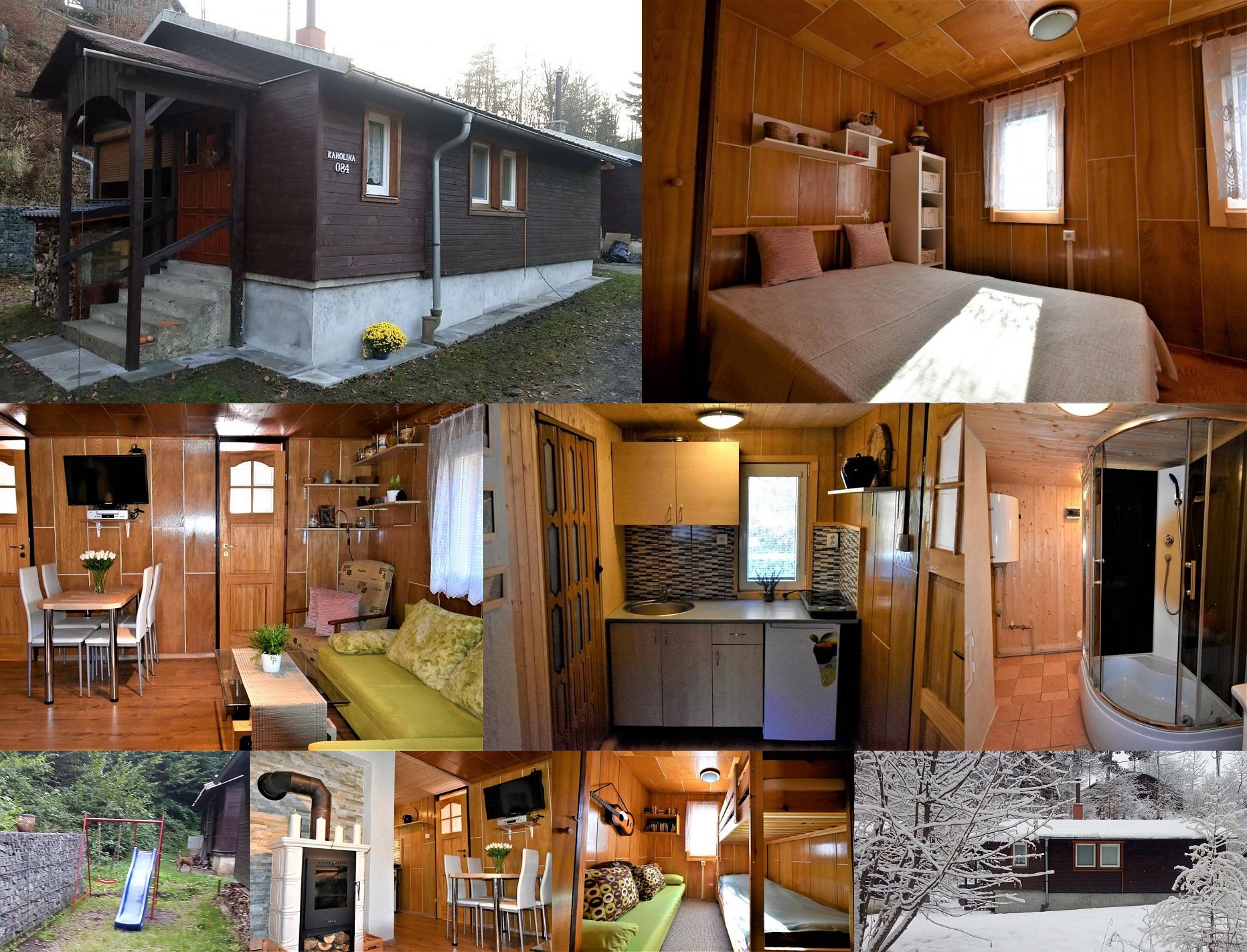 Размещение: Dřevěná chata se vším potřebným vybavením a soukromím pro 2-5 osob. V chatě jsou 2 ložnice (v první je manželská postel, ve druhé gauč a patrová postel), vlastní koupelna s WC, obývací pokoj s krbem a TV, kuchyňka (varná konvice, lednička, mikrovlnka, el. vařič) a terasa. Krb k vytápění i navození útulné atmosféry. Před chatou je skluzavka s houpačkou. Parkovaní možné přímo u chaty (v zimě kvůli nesjízdné cestě 150 m od chaty).