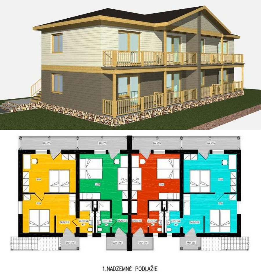 Размещение: Apartmánová chatka novovybudovaná v roku 2018. V chatke je 8 apartmánov, každý pre pre 4 osoby (+ možnosť prísteliek). V každom apartmáne je kuchyňa (el. dvojplatnička, mikrovlnka, rýchlovarná kanvica, chladnička s mrazničkou), kúpeľňa, spálňa s manželskou a poschodovou posteľou, TV-SAT, rádiom, klimatizáciou a balkónom. V štyroch väčších apartmánoch je aj spoločenská miestnosť s pohodlným gaučom (možné ako prístelka pre dve osoby). V celej chate je WiFi pripojenie.