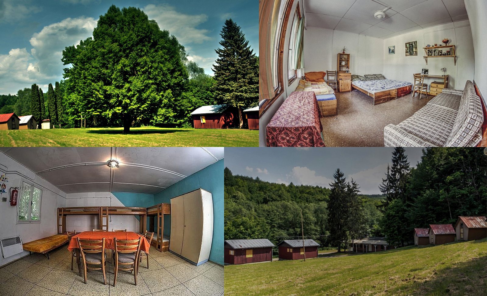 Размещение: Kemp s chatami, apartmány a prostorem ke stanování až pro 100 stanů. Chatky: 12x 2-lůžková (bez příslušenství), 10x 4-lůžková (bez příslušenství), 4x 10-lůžková (s vlastním WC) a 2x 5-lůžková (s vlastním WC a kuchyňkou), nutný je vlastní spacák. Součástí areálu je plně vybavená kuchyň (možnost zajištění stravy dle domluvy, až pro 120 osob), společenská místnost (jídelna), společné sociální zařízení se sprchami, betonové hřiště a ohniště. Kemp je vhodný především pro letní dětské tábory, školní výlety, rodinné pobyty, firemních akce či sportovní soustředění. Kemp je v provozu v měsících 04-10.
