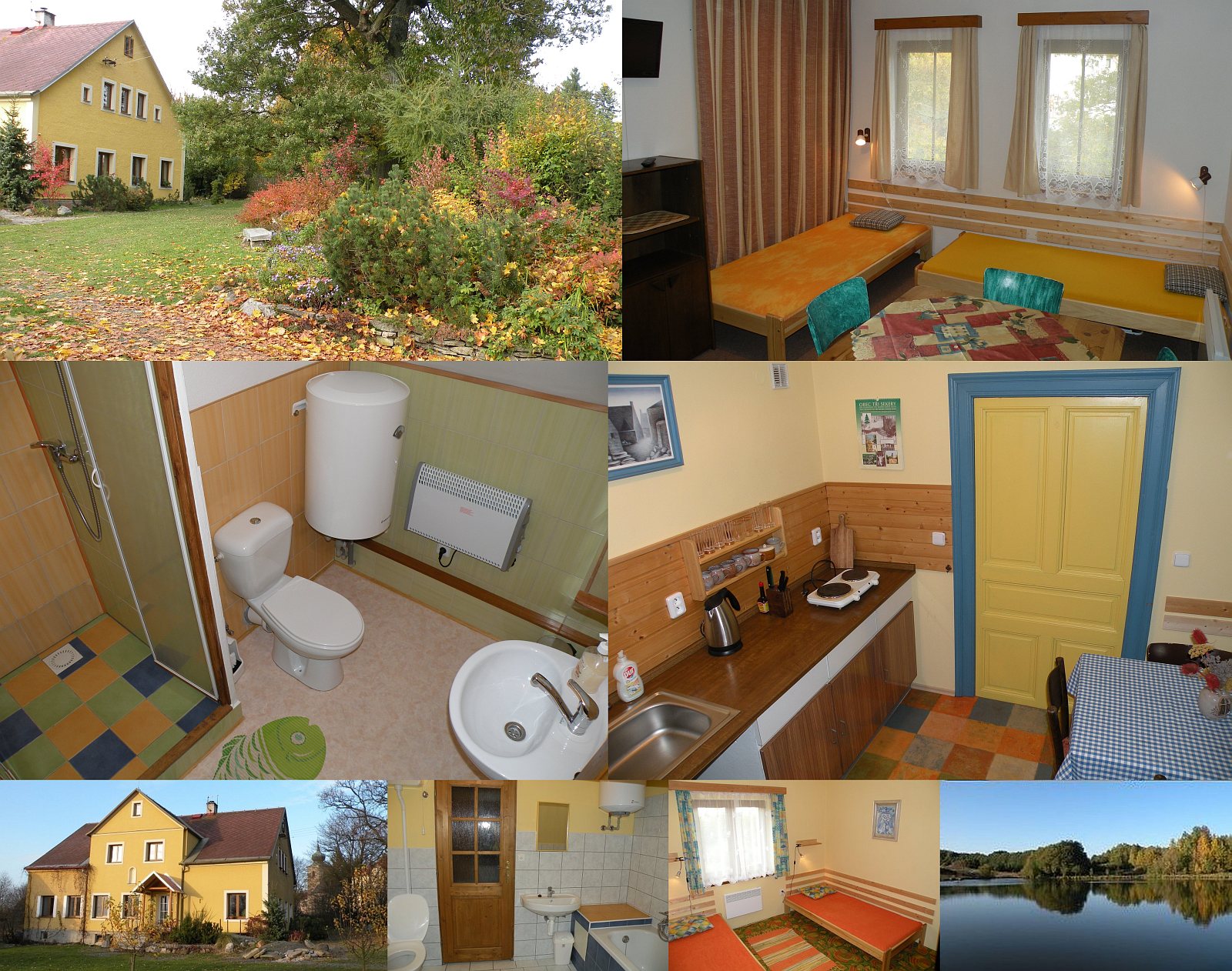 Размещение: Tři apartmány (byty) v podkroví obytného domu, každý apartmán je pro 5 nebo 6 osob. V apartmánu jsou 2 pokoje, koupelna s WC, TV, internet, kuchyňský kout (lednice, el. dvouvařič, rychlovarná konvice, nádobí), sušák na prádlo, el. přímotopy, bojler. Na společné chodbě je pračka se sušičkou, žehlení, mapy, hry atd. Zahrada poskytuje posezení, ohniště, houpačku, šplhadlo, pískoviště. Úschovna kol. Přízemí domu obývají majitelé, avšak vchody a prostory v domě i na zahradě jsou samostatné, a tak se s hosty vzájemně neruší. Domácí mazlíčci po dohodě.