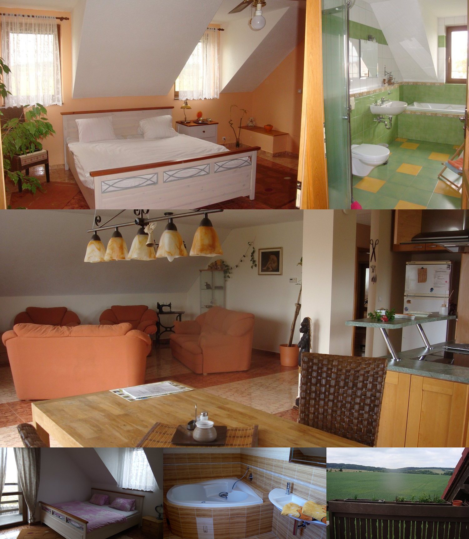 Размещение: Apartmán pro 4 dospělé nebo 3 dospělé + 2 děti v prvním patře většího rodinného domu. V apartmánu je ložnice s manželskou postelí, koupelna s vířivou vanou a pokoj s rozkládacím gaučem, jedním lůžkem a kuchyní (lednice, vařič, mikrovlnka). WiFi připojení k internetu.