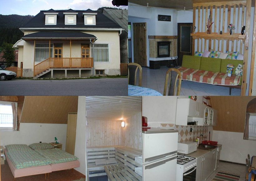 Размещение: Privát s kapacitou 15 lůžek (pokoje 2x5, 1x3, 1x2 lůžka). Zdarma wi-fi připojení na Internet, satelitní příjem TV programů a mini-audio systém. Společené soc. zařízení (toaleta, koupelna, sprchový kout) a kuchyňka s mikrovlnkou. Společenská místnost s krbem. Podlahové topení. Ve dvoře je sauna (za príplatok) s altánkem.