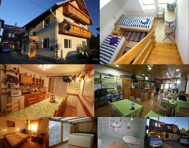 Размещение: Penzion s 16 izbami a 5 apartmánmi v dvoch budovách. Izby aj apartmány sú 2-lôžkové a majú vlastné soc. zariadenie, TV a chladničku. Dve spoločné kuchyne a jedálne. Spoločenské hry, knihy, elektronické šípky, stolný futbal. V penzionu je vlastná reštaurácia (34 miest, možnosť aj plnej penzie), letná terasa (36 miest), salónik (12 miest), bar, záhradný grill s posedením. Parkovanie pre 12 áut pri penzione. V penzione je jacuzzi (6 osôb), fínská sauna a mini fitness. Ponúkame odvoz na Podbanské, Tri Studničky, Štrbské Pleso a iné východiská túr.