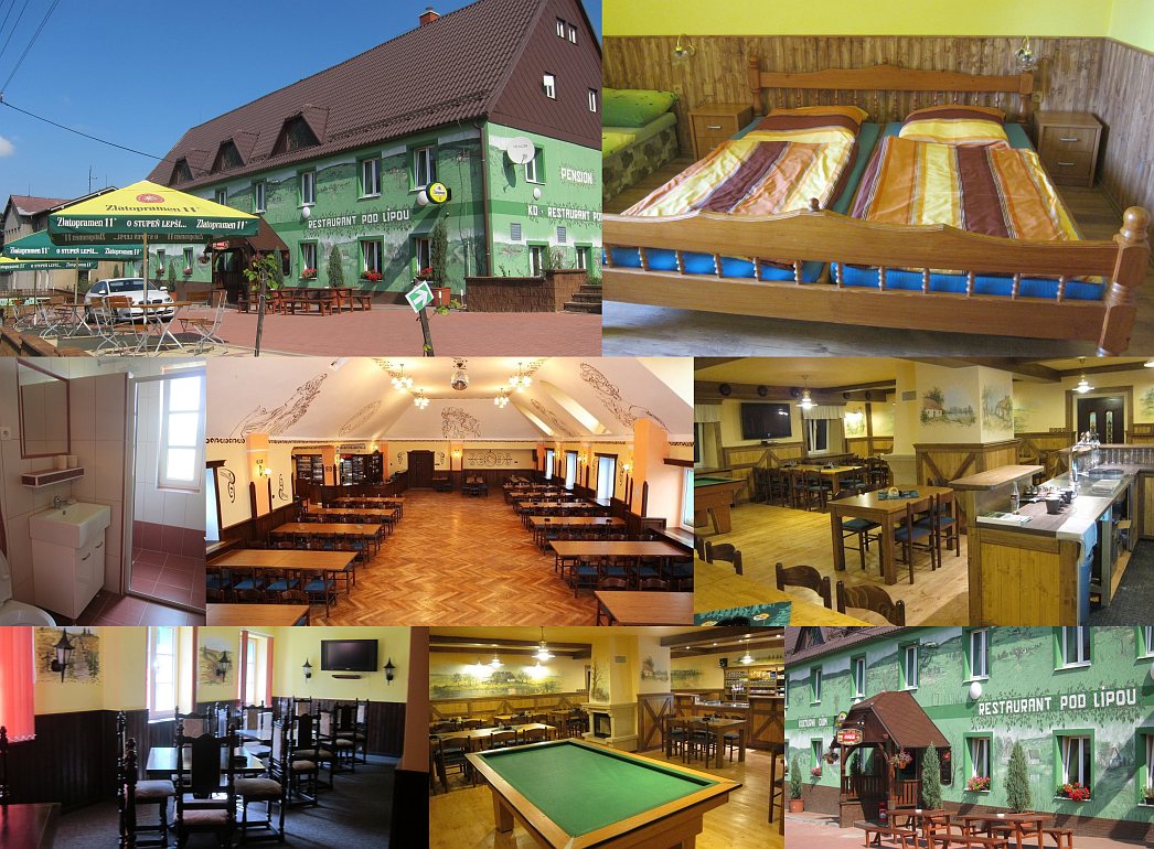 Размещение: Penzion s kapacitou 40 lůžek v nově vybavených pokojích s TV. Některé pokoje mají vlastní koupelnu, pro ostatní je soc. zařízení společné. Velký zrekonstruovaný sál vhodný pro plesy, koncerty i zábavy. Stylová restaurace s kuchyní. WiFi internet v celém penzionu. Zabezpečená místnost pro úschovu kol.