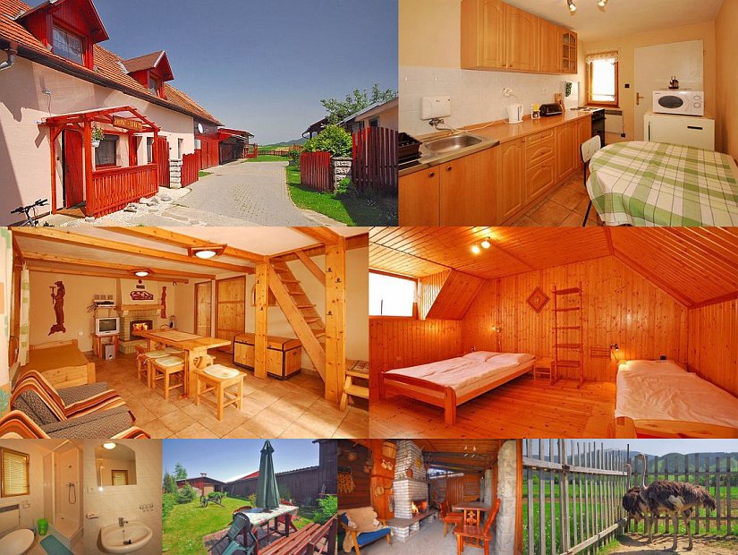 Размещение: Privát so dvomi 4-lôžkovými izbami s možnosťou prístelku. Spoločná sprcha, WC, spoločenská miestnosť (krb, TV, rádio), kuchynka (el. sporák, chladnička, mikrovlnka, rýchlovarná kanvica, príbory, utierky). Možnosť parkovania vo dvore, zapožičanie bicyklov na cykloturistiku. Atrakciou vo dvore sú pštrosy. Možnosť výletov v 8-miestnom mikrobuse.
