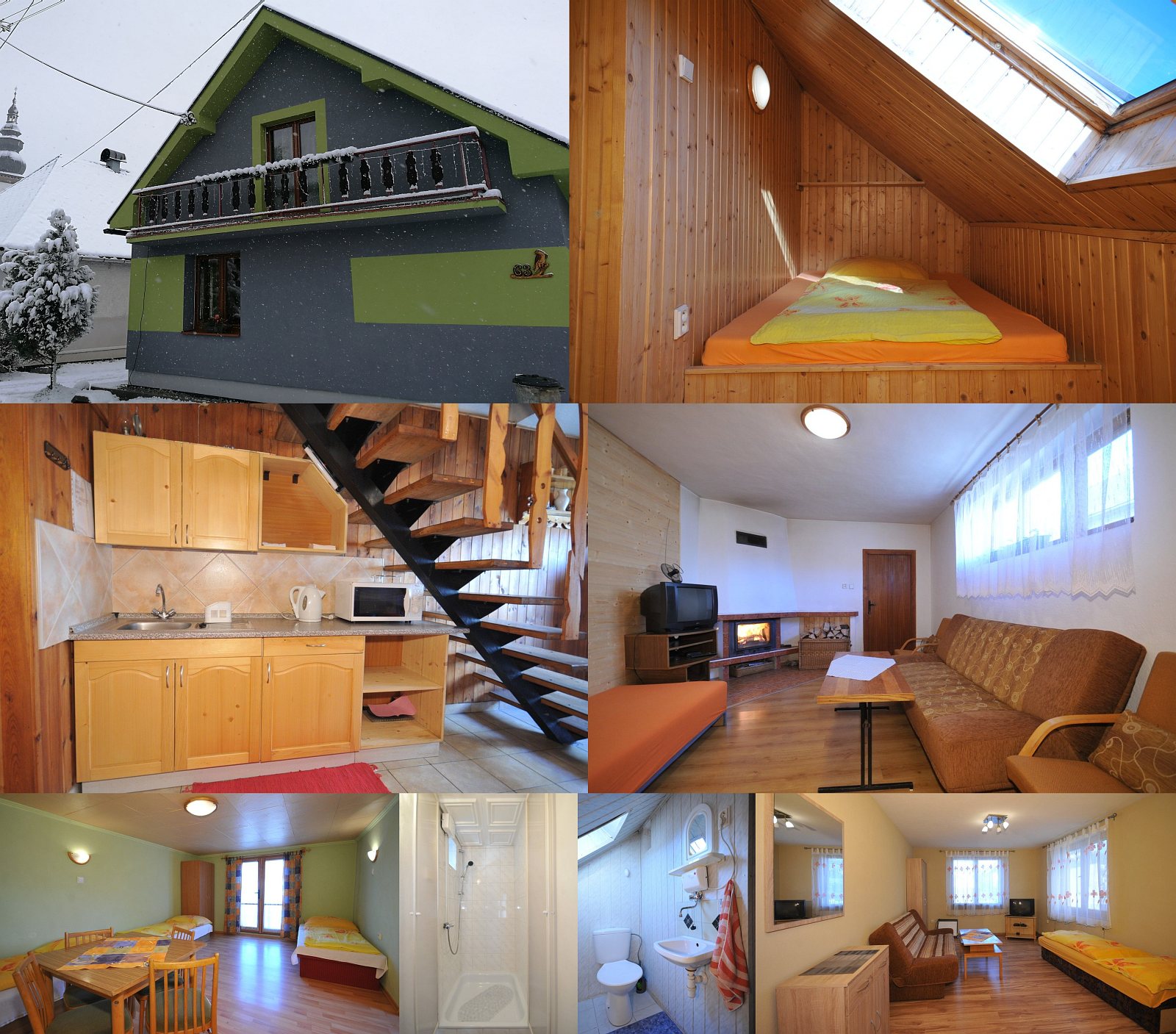 Размещение: Dom s pre 13 osôb v 3 izbách. Prízemie: dve 2-lôžkové izby (TV, 2 prístelky, jedna izba má krb), kuchynský kút (el. varič, chladnička s mrazničkou, rýchlovarná kanvica), kúpelňa (sprchovací kút, WC). Poschodie: 5-lôžková izba (balkón, TV), oddelená časť pre 2 osoby, kuchynský kútik (el. varič, rýchlovarná kanvica), sprchovací kút a WC. Vonku je krytý prístrešok s posedením, ohniskom, grilom. Miestnosť na bicykle a lyže. Parkovanie v uzavretom dvore. Požičovňa horských bicyklov a kánoí.