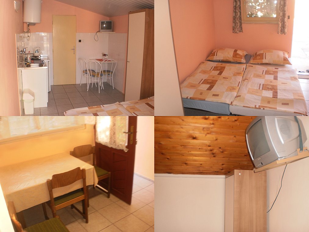 Размещение: Privát s dvomi apartmánmi. Apartmány sú 2- a 3-lôžkový. V každom apartmáne je samostatné WC, sprcha a kuchyňka (chladnička, varná kanvica, TV). Posedenie vonku s možnosťou grilovania, veľká záhrada. Parkovanie vo dvore zadarmo. Ideálne pre rodiny s detmi, ktoré uprednostňujú kľud. Ubytovanie je možné v mesiacoch 04-09.
