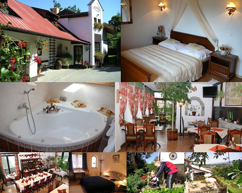 Размещение: Romantický penzion s kapacitou 21 lůžek. Pokoje 1- až 4-lůžkové (s možností přistýlky) s vlastním soc. zařízením, TV, lednicí (na vyžádání). Dva apartmány, každý pro 4-6 osob (3-pokojový s kuchyňským koutem, 2-pokojový s balkónem). Restaurace (40 míst) s letní zahrádkou (20 míst), vhodné k pořádání společenských akcí. Připojení na internet na pokojích i v restauraci.