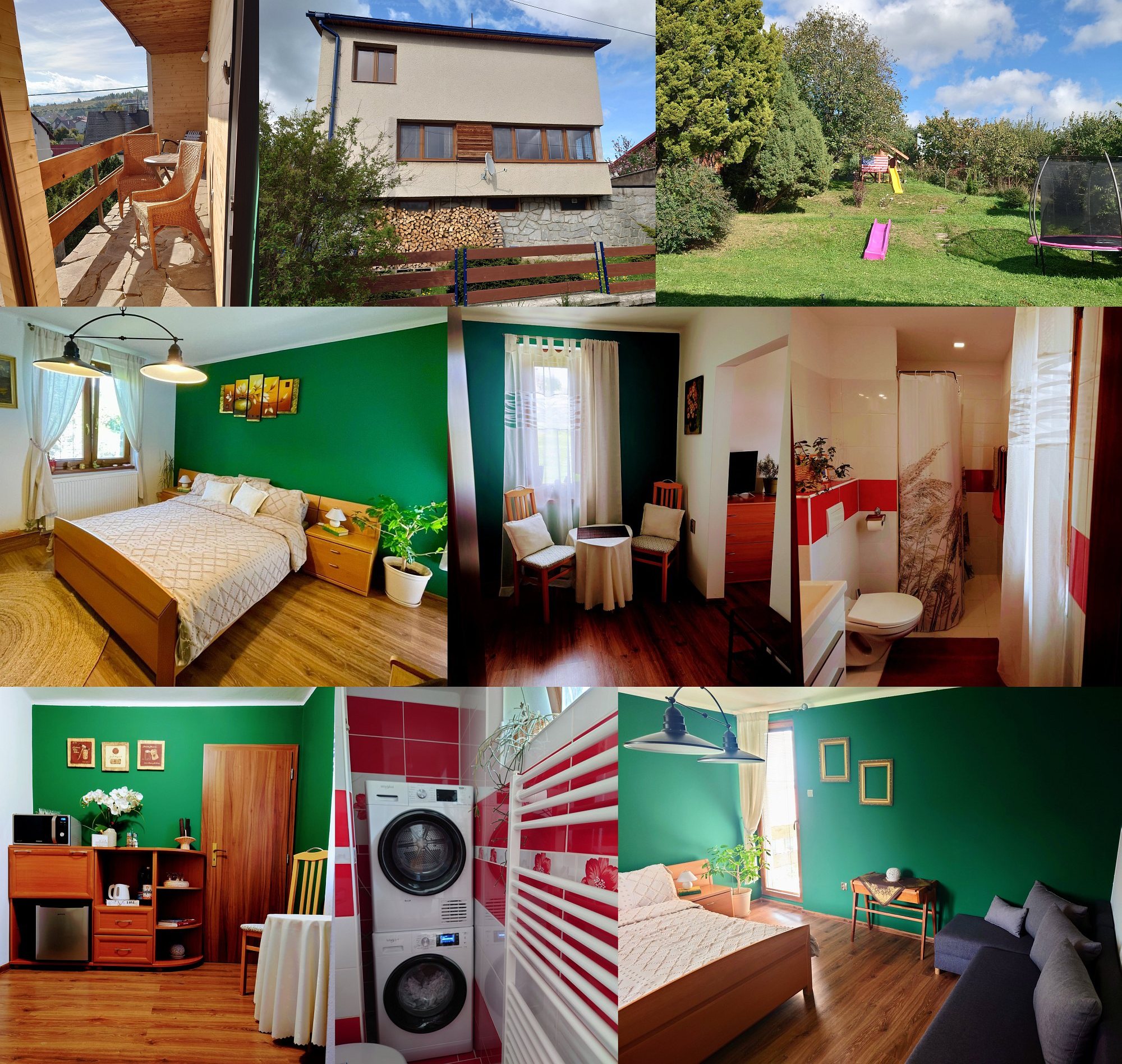 Размещение: Malý útulný apartmán pre 2-3 osoby v rodinnom dome so samostatným vchodom a veľkou záhradou s posedením a atrakciami pre deti. V apartmáne je spálňa, kúpeľňa, štandardne vybavená kuchynka, balkón s posedením a WiFi. Možnosť využitia práčky a sušičky. Parkovanie priamo pred domom.