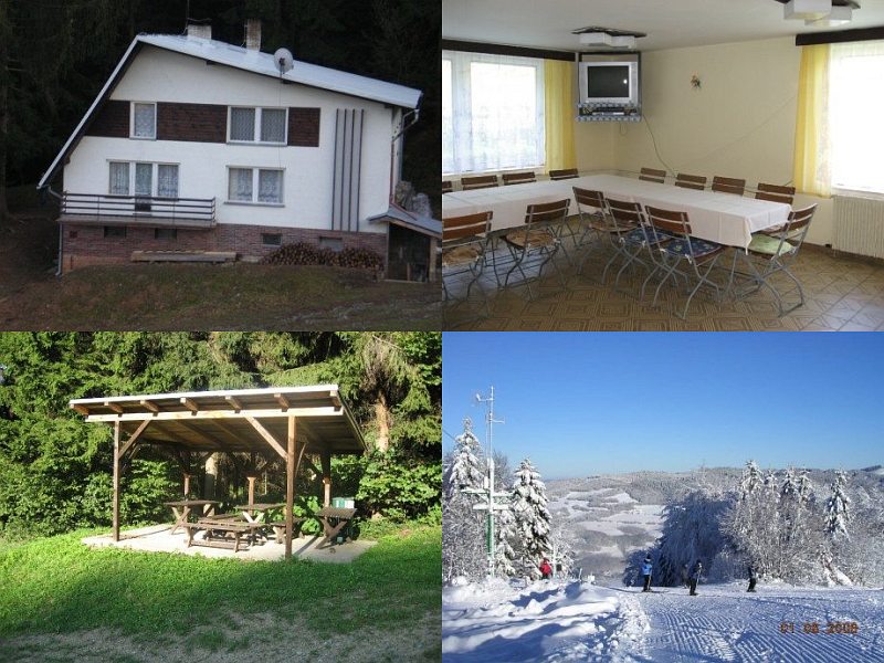 Размещение: Chata s kapacitou 36 lůžek, vhodná i pro rodiny, oslavy a srazy. Pokoje 1x9, 1x7, 2x6 (z toho 1 podkrovní), 1x5, 1x3 (podkrovní). Klubovna s krbem (součástí je bufet, možnost pouštět Hi-Fi věž). Velká společenská místnost (jídelna) s TV a DVD. Ping-pong s příslušenstvím, společenské hry. Venkovní posezení s ohništěm, udírna, gril. Plně vybavená kuchyňka. Možnost dovozu hotového jídla (min. 10 osob). V zimě je na chatě bufet (točené pivo, teplé a studené nápoje, alko, nealko, cukrovinky).