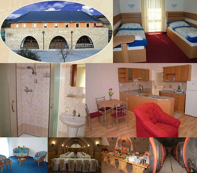 Размещение: Penzion s reprezentačním vinným sklepem a ubytováním ve 2-lůžkových pokojích a jednom 2-lůžkovém apartmánu. Každý pokoj i apartmán mají vlastní soc. zařízení, apartmán má navíc kuchyňku. Ve sklepě je možné pořádat školení či večírky. Zajištění stravování po dohodě. Široká nabídka vín, včetně možností ochutnávání.