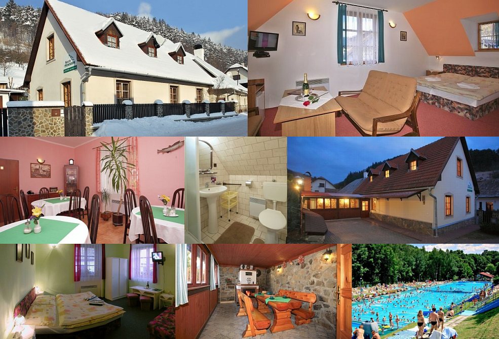 Размещение: Celoročne otvorený penzión. Apartmán (pre 2+2 osoby) a izby (2- a 3-posteľové) s kompletným sociálnym vybavením, LCD-TV, rádiom, chladničkou, WiFi. Ponúkame raňajky. Večer doporučujeme posedenie pri krbe v útulnej štýlovej miestnosti. Ponúkame automobilovú prepravu hostí zo stanice (vlak, bus) a jazdu v teréne do okolí Kremnice (off-road). Pre majiteľov áut strážené parkovanie v areáli penziónu. Úschova bicyklov.