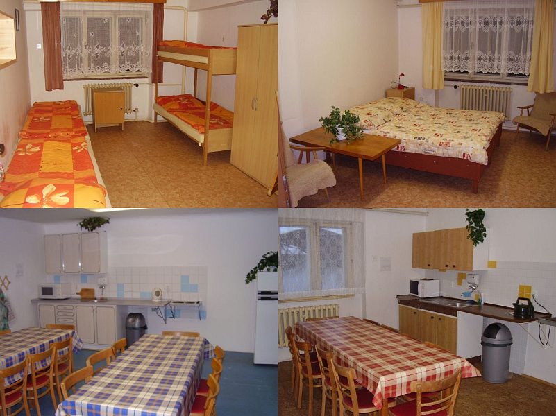 Размещение: Ubytovna s kapacitou 45 míst v 17 pokojích po 2, 4 a 6 lůžkách. Na patře jsou 2 společné kuchyňky, 2 klubovny a soc. zařízení. Na ubytovně je WiFi a pingpongový stůl. Před ubytovnou je hřiště. Parkování pro osobní auta i autobusy přímo v areálu ubytovny. Lyže, kola a jiné sportovní prostředky lze uschovat v zamykatelné místnosti. Možnost celodenního stravování (pro větší skupiny osob) v jídelně vzdálené 20 m od ubytovny.