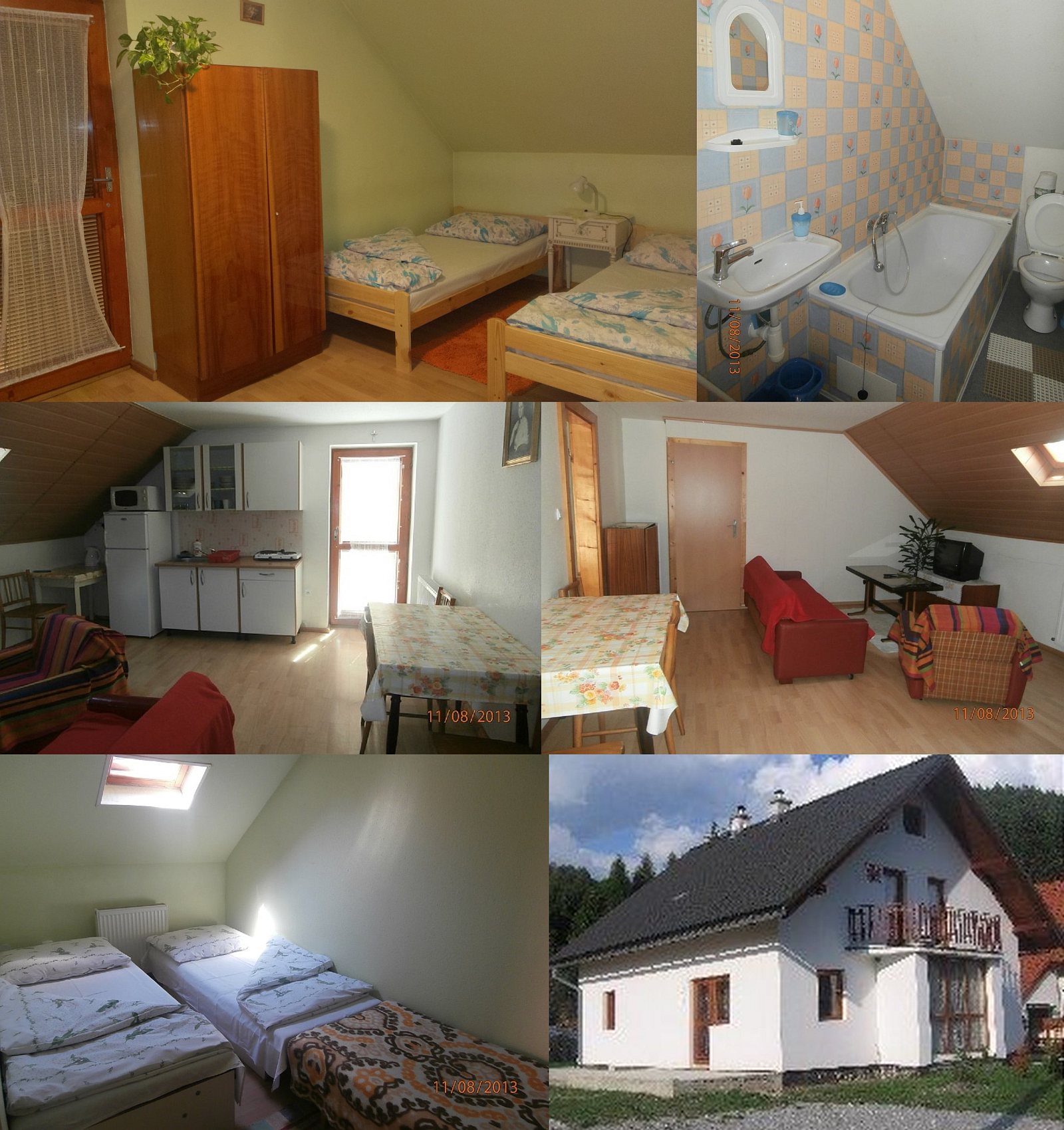 Размещение: Apartmán pre max. 6 osôb v oddelenej časti rodinného domu. Dve izby (3-posteľová + 2-posteľová). Kúpeľňa + WC. Spoločenská miestnosť s TV a kuchynským kútom (chladnička, varná kanvica, varič). Vonkajšie posedenie (ohnisko). Parkovisko pred domom.