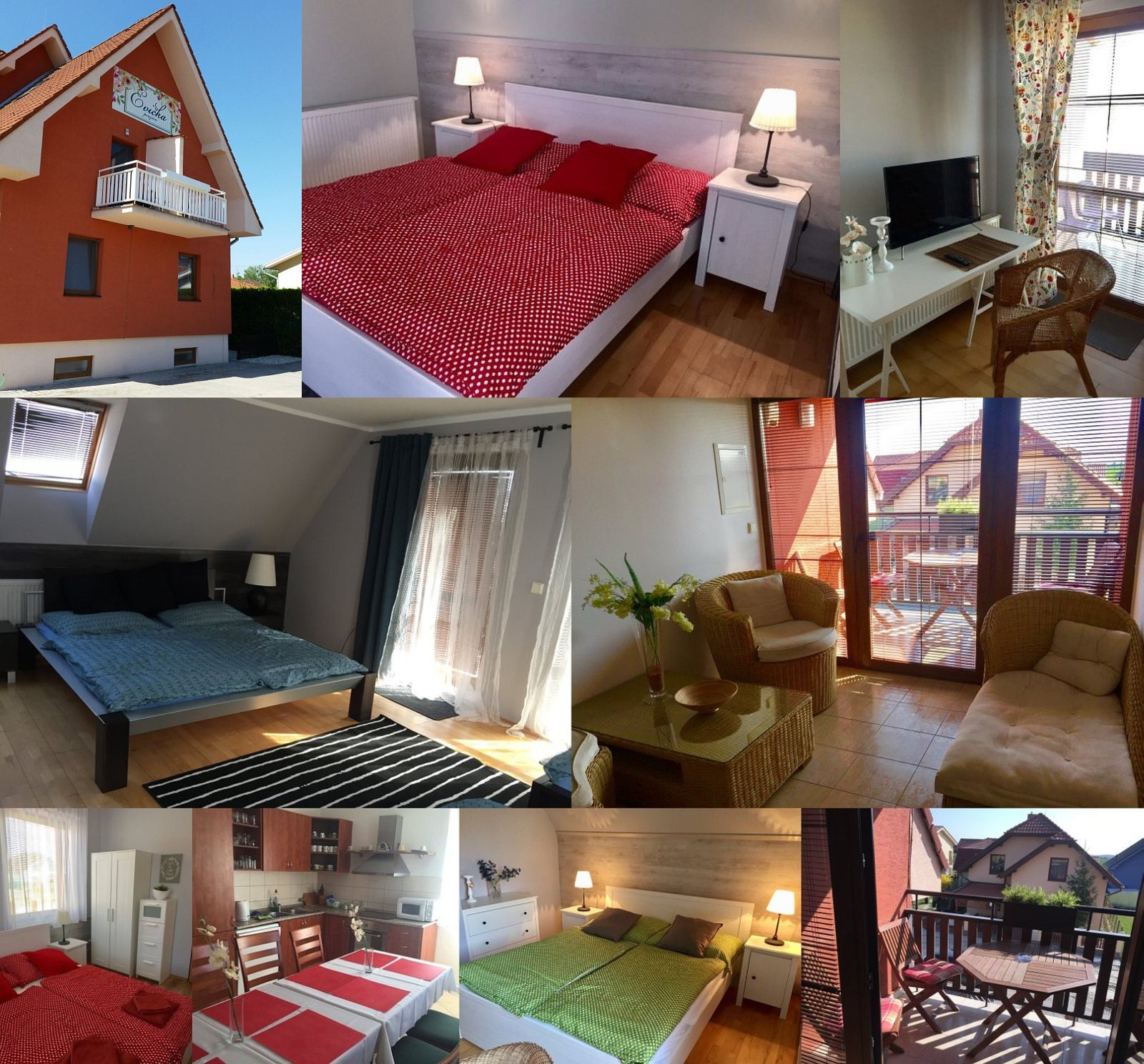 Размещение: Penzión s kapacitou 35 lôžok v 10 dvojlôžkových elegantne zariadených izbách s 1-2 prístelkami. Kúpeľňa a WC v každej izbe, kuchyňa v niektorých izbách. K dispozícii je detská postieľka. Parkovanie je možné na uzavretom dvore. K dispozícii je veľký dvor, na ktorom majú hostia možnosť grilovania, loptových hier, pre deti pieskovisko a hojdačka.