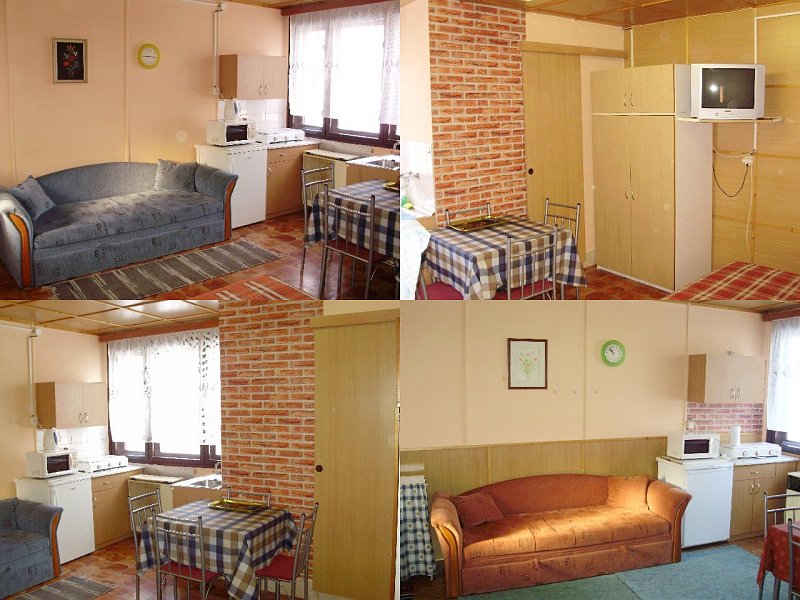 Размещение: Chatky, apartmán a kemping s celoročnou prevádzkou. Posedenie vonku pod terasou s možnosťou grilovania. Hojdačka pre deti. Bezplatné parkovanie vo dvore. Apartmán: 3-lôžkový s kuchyňou a kúpeľňou. Chatky: 1x 2-lôžková, 2x 4-lôžkové (2+2 lôžka). Každá chatka má vlastný vchod, vlastnú kuchyňu (mikrovlnná rúra, rýchlovarná kanvica, dvojplatnička, chladnička s mrazničkou), soc. zariadenie a káblovú televíziu. Kemp: možnosť rozložiť stan alebo karavan, k dispozícii je kúpeľňa s teplou vodou.