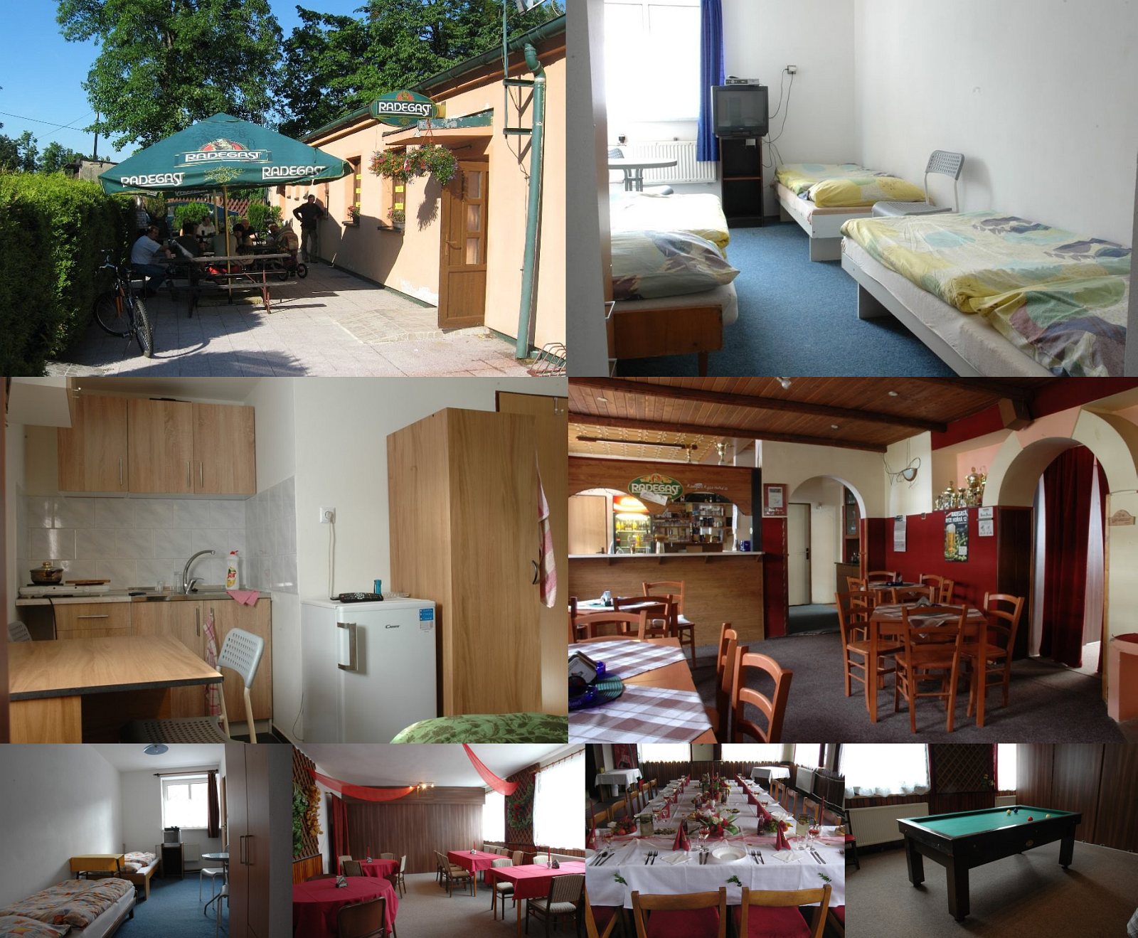 Размещение: Menší penzion s restaurací a pokoji pro hosty. V penzionu jsou 4 pokoje (1x1, 1x2, 2x3 lůžka) s vlastním soc. zařízením, TV a WiFi. Společná kuchyňka. Restaurace s barem (20 míst), dvěma nekuřáckými sály (70-80 míst) a venkovní terasou (možnost grilování, příjemné podhorské posezení). Bezbariérový příjezd do restaurace i WC. Kulečník, šipky, ping-pong a stolní hokej.