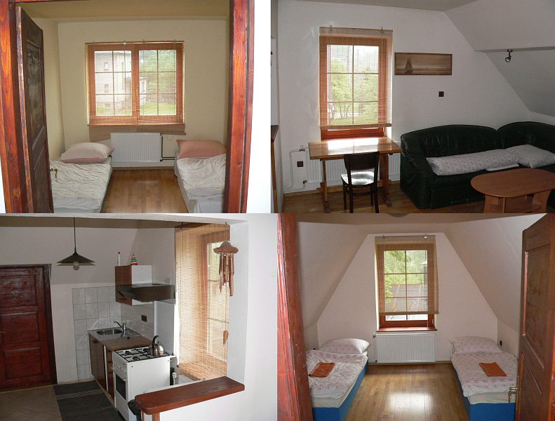 Размещение: Příjemně zařízený podkrovní byt pro 4-6 osob nad Hostincem u Turka se samostatným vchodem. V bytě jsou 2 ložnice, kuchyňka, obývací pokoj a koupelna s WC. Ubytování je možné jen mimo topnou sezónu!