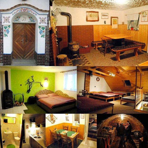 Размещение: Tři pokoje přímo nad vinným sklepem, celkem pro 15 osob. Pokoje jsou 3-lůžkový, 5-lůžkový a 7-lůžkový. Společné soc. zařízení, kuchyňka, jídelní kout, wifi zdarma. Venkovní posezení. Možnost úschovy kol. Parkování před objektem. Možnost objednání snídaní a večeří. Vhodné pro týdenní i víkendové pobyty, uspořádání osobních i firemních akcí. Ochutnávky vína.