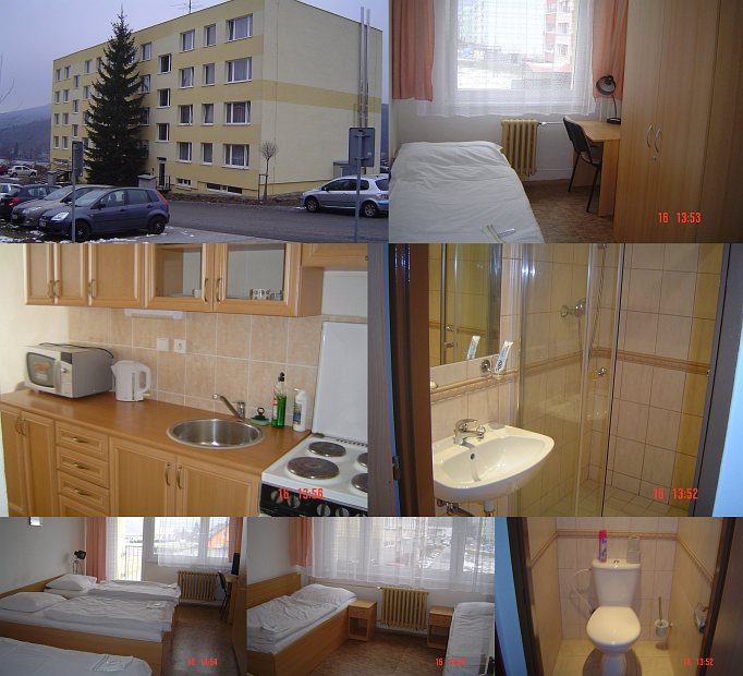 Размещение: Čtyřpodlažní ubytovna s kapacitou 113 lůžek v 1-, 2- a 3-lůžkových pokojích (s vlastním sociálním zařízením) a ve 3-lůžkovém apartmánu. Ubytovna a pokoje jsou po rekonstrukci. Na pokojích je nový nábytek, kuchyňská linka, sporák, lednice, sociální zařízení. Na některých pokojích je i TV a balkón. V ubytovně se nachází recepce, společenská místnost, prádelna, sušárna, prostor pro úschovu kol. Připojení na internet (WiFi) zdarma. Možnost parkování před ubytovnou.